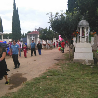 La gente sonreía y amablemente saludaban a todo aquel que le pareciera conocido. El día se vio favorable pues a pesar de que comenzó a hacer viento, no se esperaba lluvia, lo que pintaba para ser un día apto para salir a visitar las tumbas.
